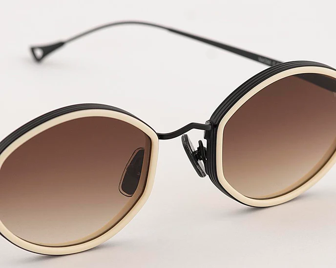 Montatura con lenti di colore marrone scuro sfumato e il frontale di colore crema