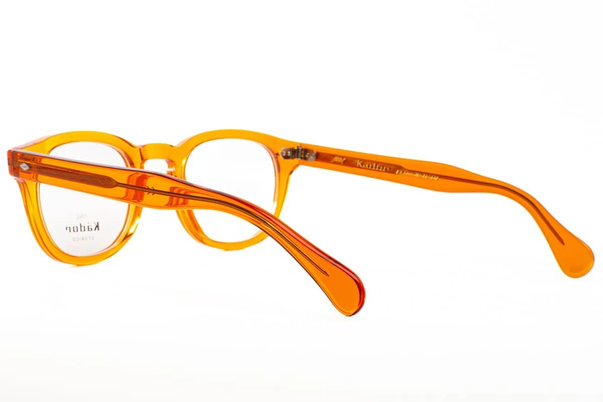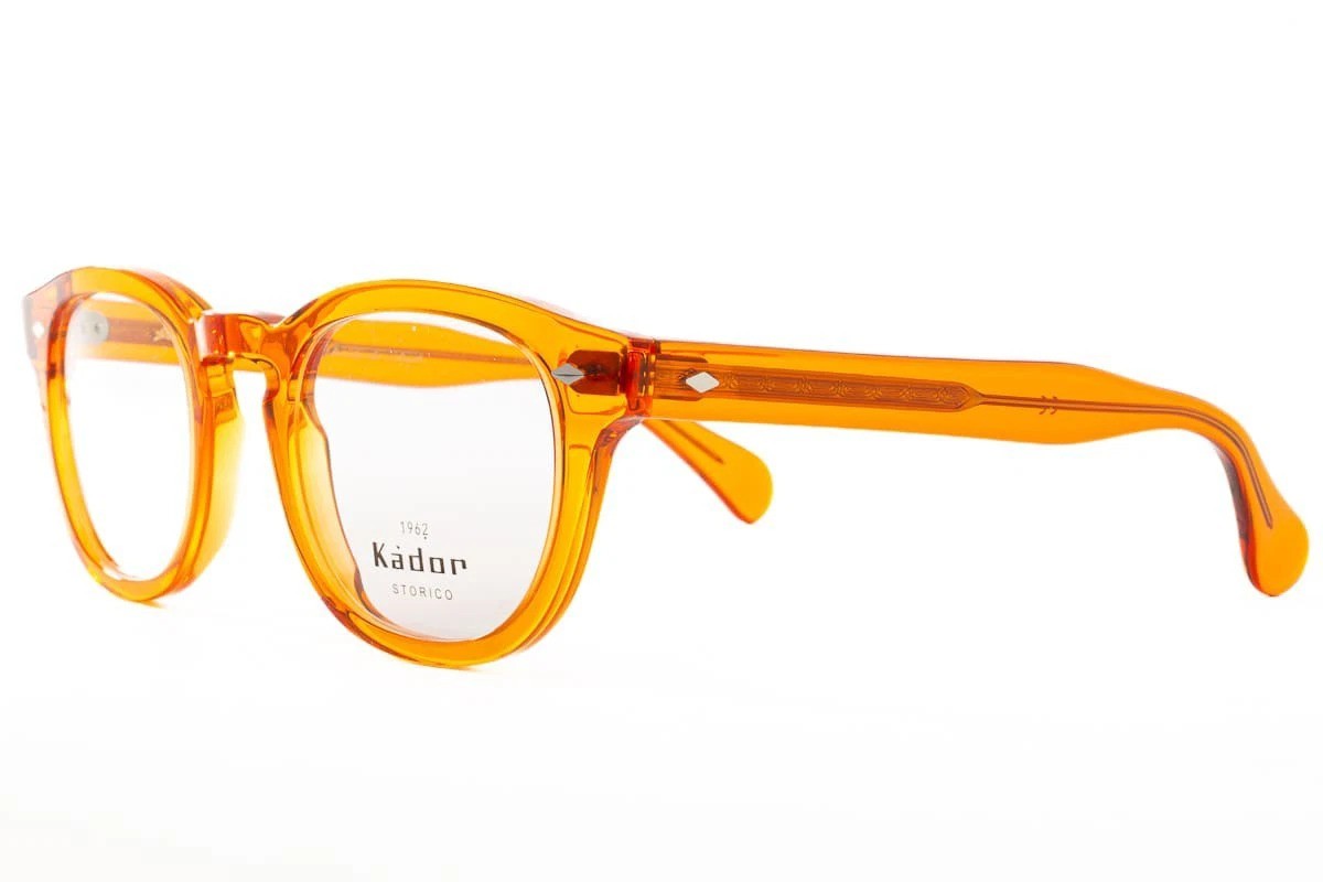 La montatura Jolly cattura lo spirito dell'occhialeria tradizionale con un acetato trasparente opaco e le animelle in metallo color oro che creano un effetto traslucido sofisticato, con riflessi caldi che si adattano ad ogni incarnato. La linea classica della forma si abbina perfettamente sia a volti rotondi che ovali, mentre i dettagli lavorati a mano testimoniano l'attenzione di Kador per il sapere artigianale.