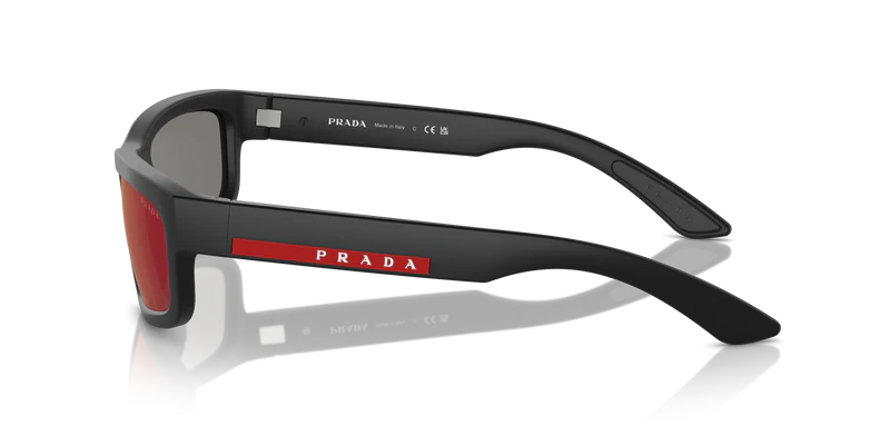 Occhiale da sole con frontale avvolgente e lenti di colore grigio scuro specchiato blu-rosso