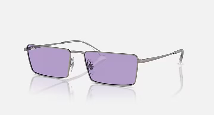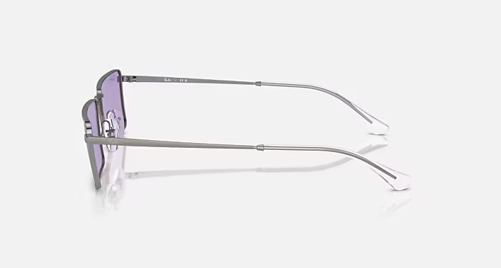 Occhiale da sole con montatura rettangolare in metallo di colore lucido gunmetal e le lenti di colore viola
