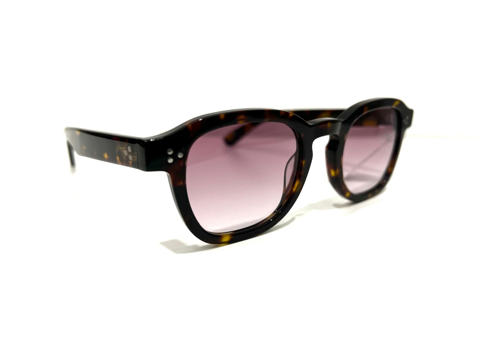 Occhiale da sole unisex in celluloide dalla forma quadrata di colore Havana Scura con lenti viola scuro-sfumato