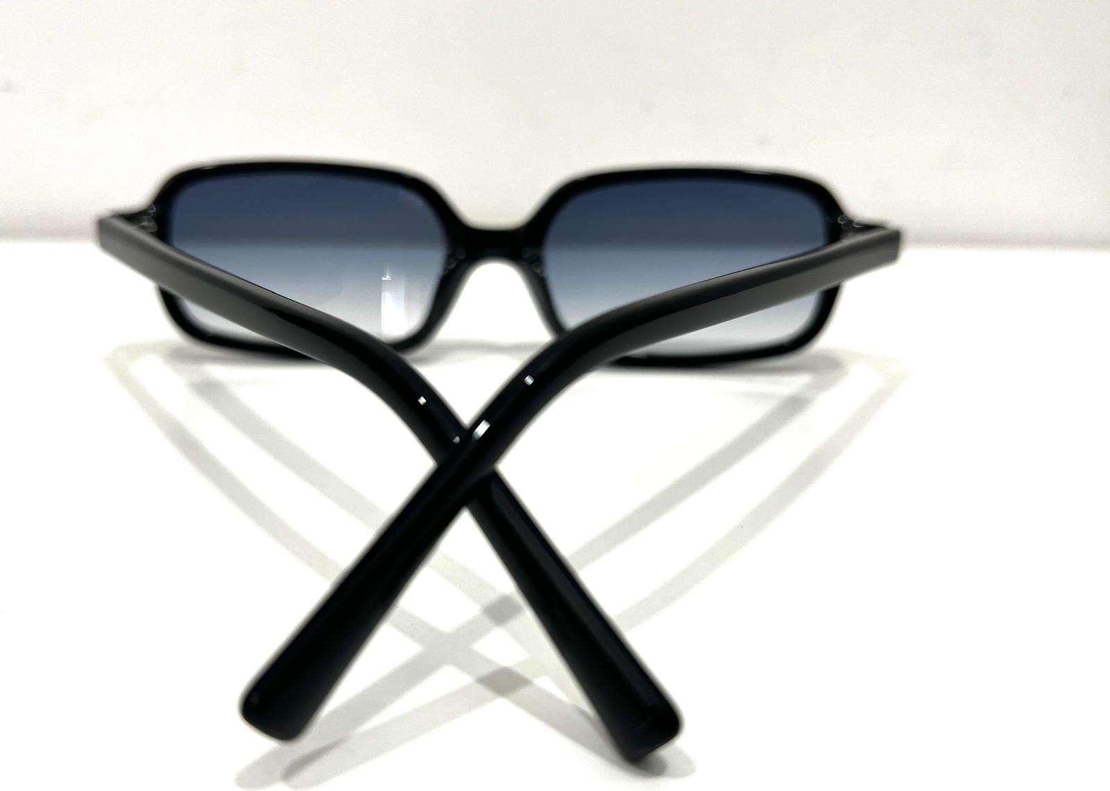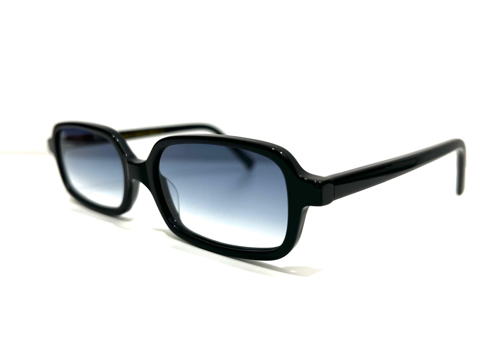 Occhiale da sole in celluloide unisex di colore nero con lenti azzurro - sfumato