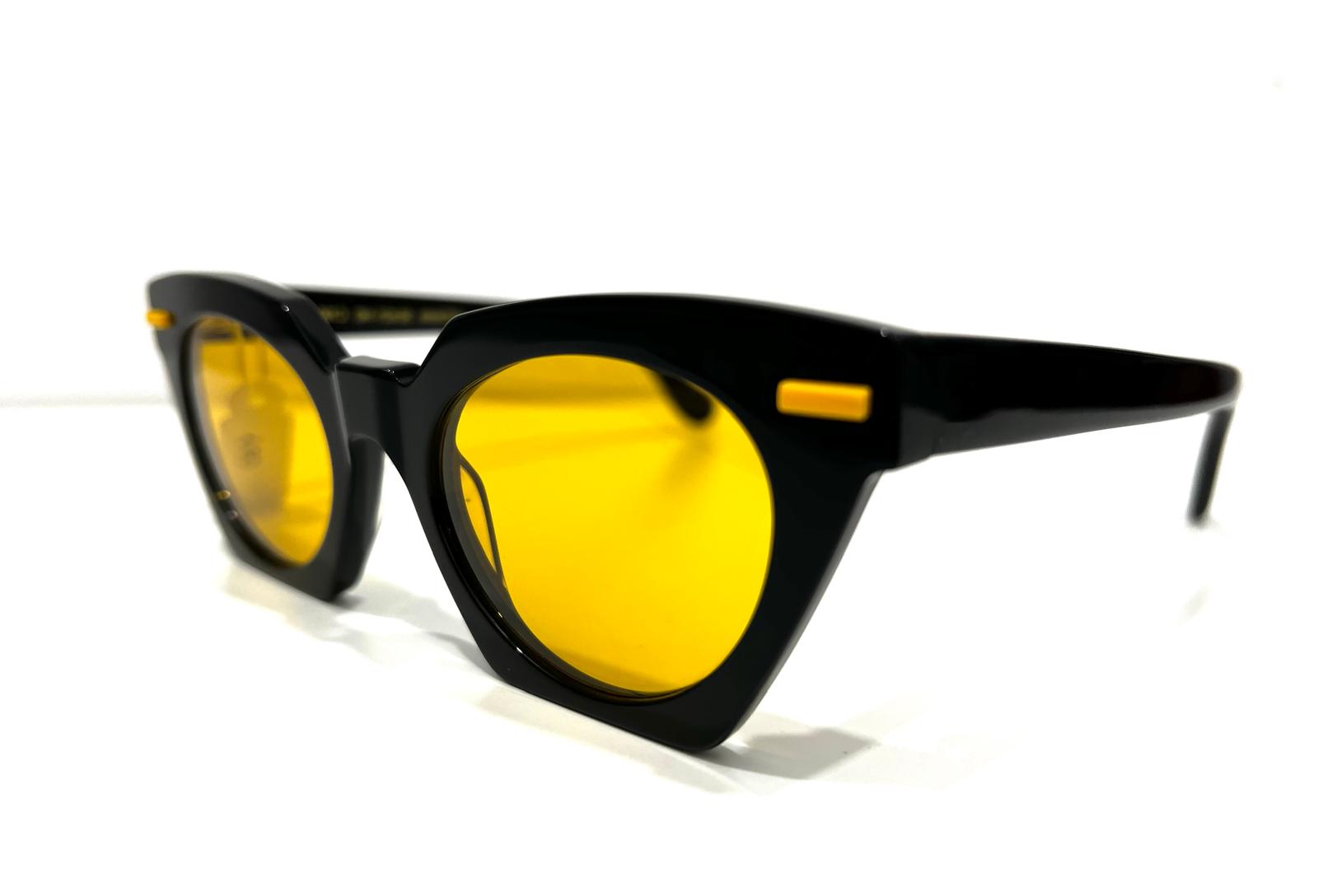 Occhiale da donna in celluloide dalla forma a gattina di colore nero con lenti giallo -scuro