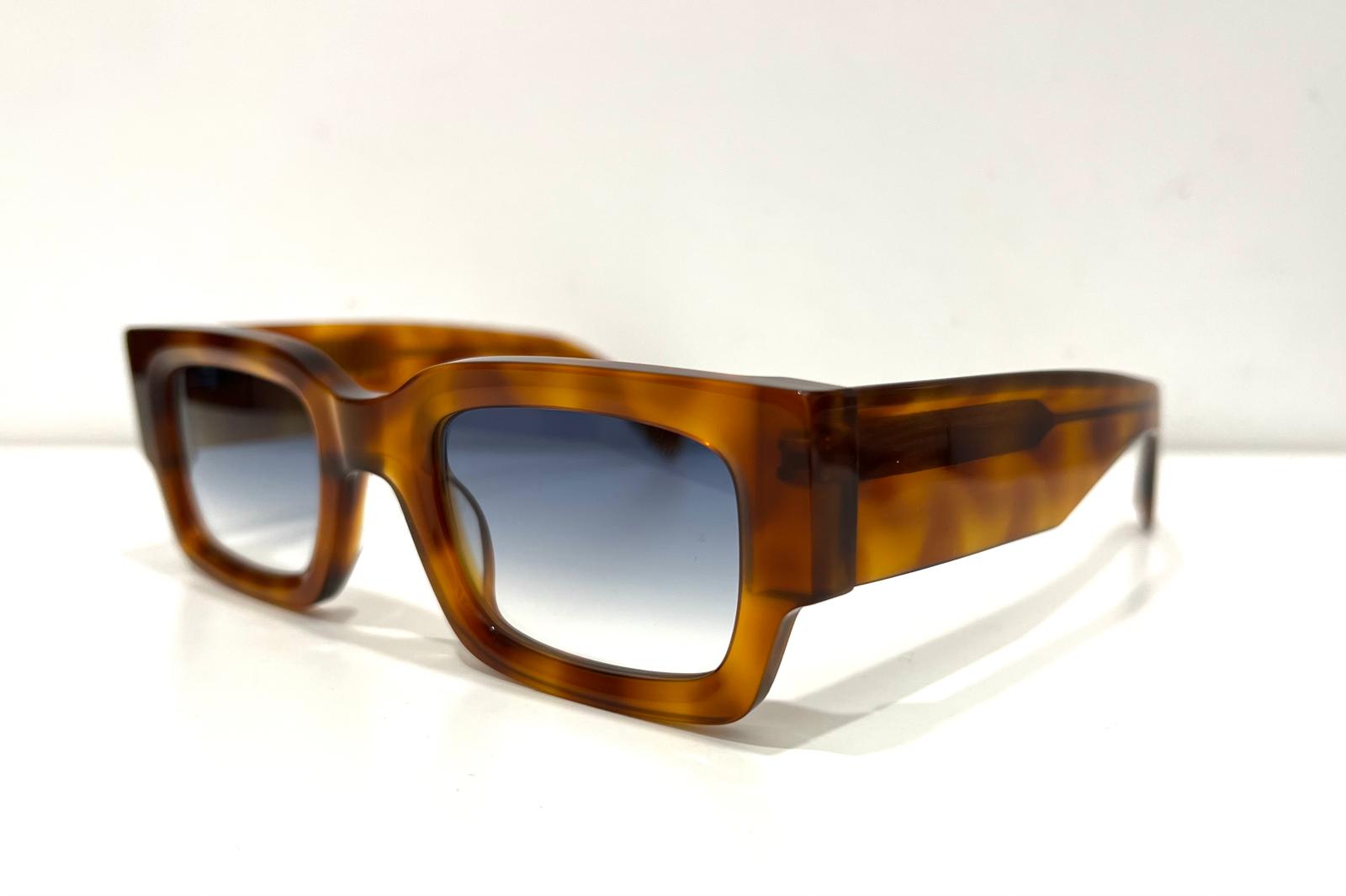Occhiale da sole Unisex dalla forma rettangolare e di colore caramello