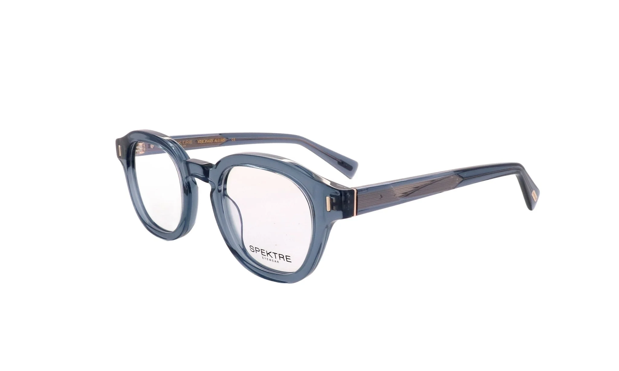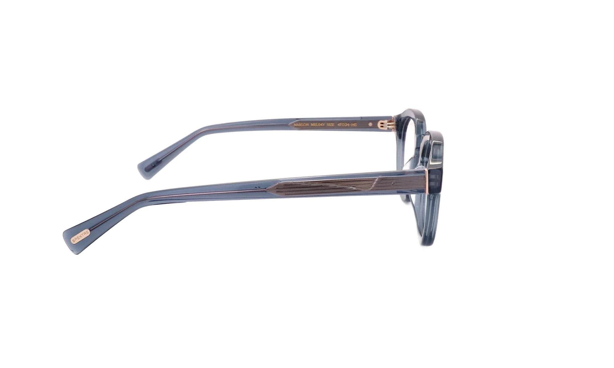 occhiale da vista in celluloide dalla forma esagonale di colore Blu