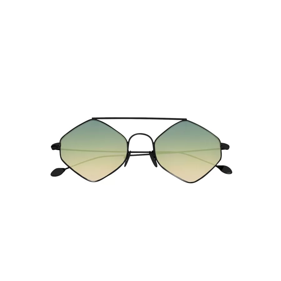 Occhiale da sole in metallo unisex dalla forma a rombo e di colore nero con lenti verde-giallo sfumato