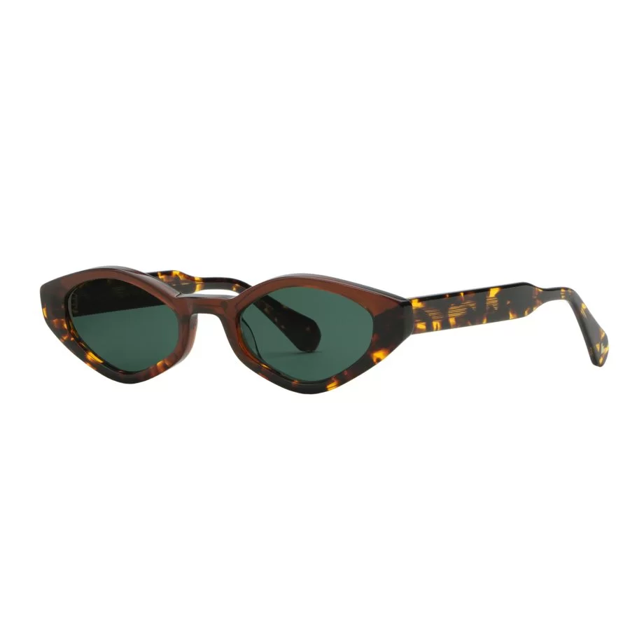 Montatura in celluloide, doppio colore marrone e havana, lente verde G15