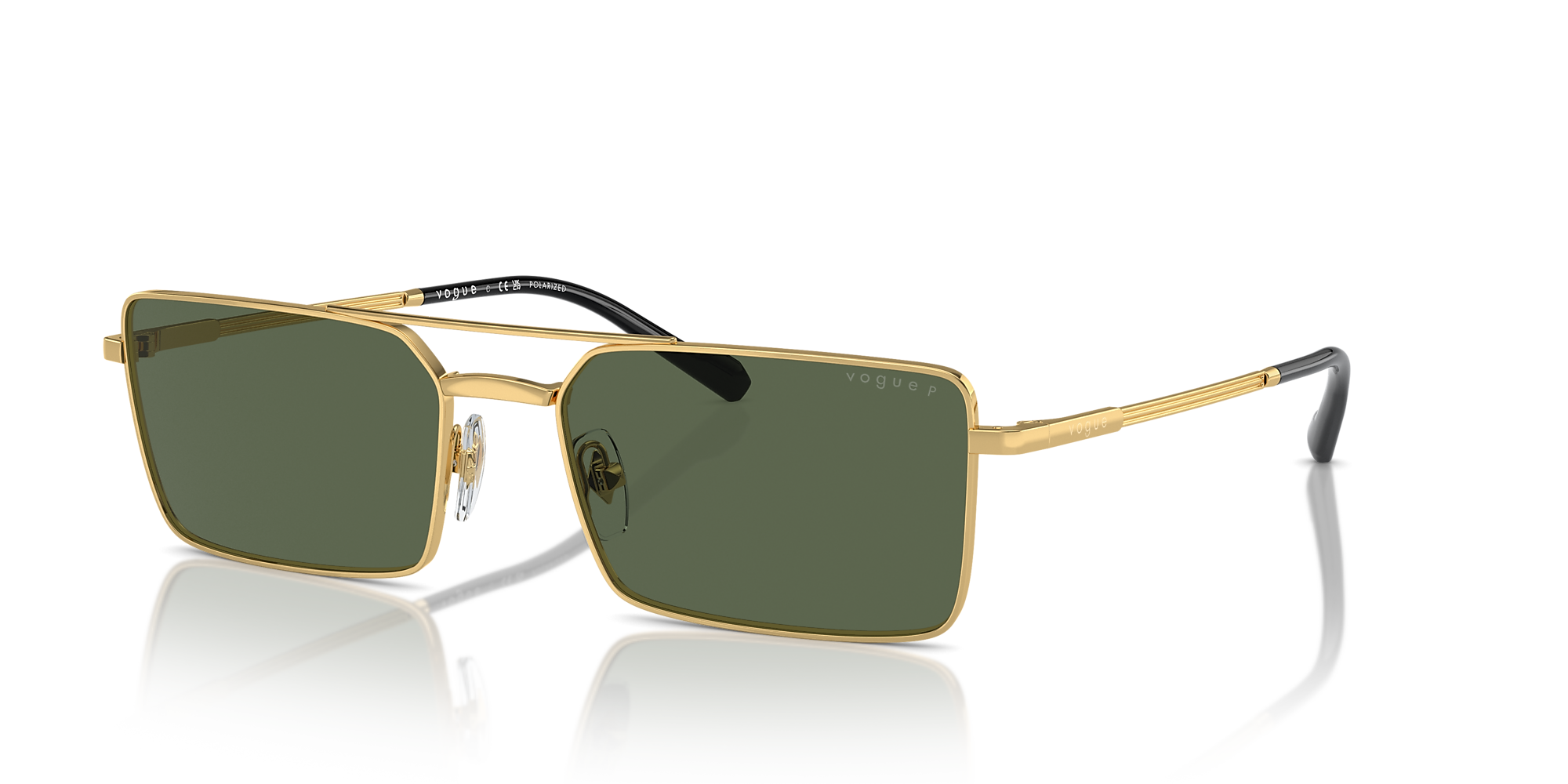 Occhiale da sole con lenti di colore verde scuro e frontale oro